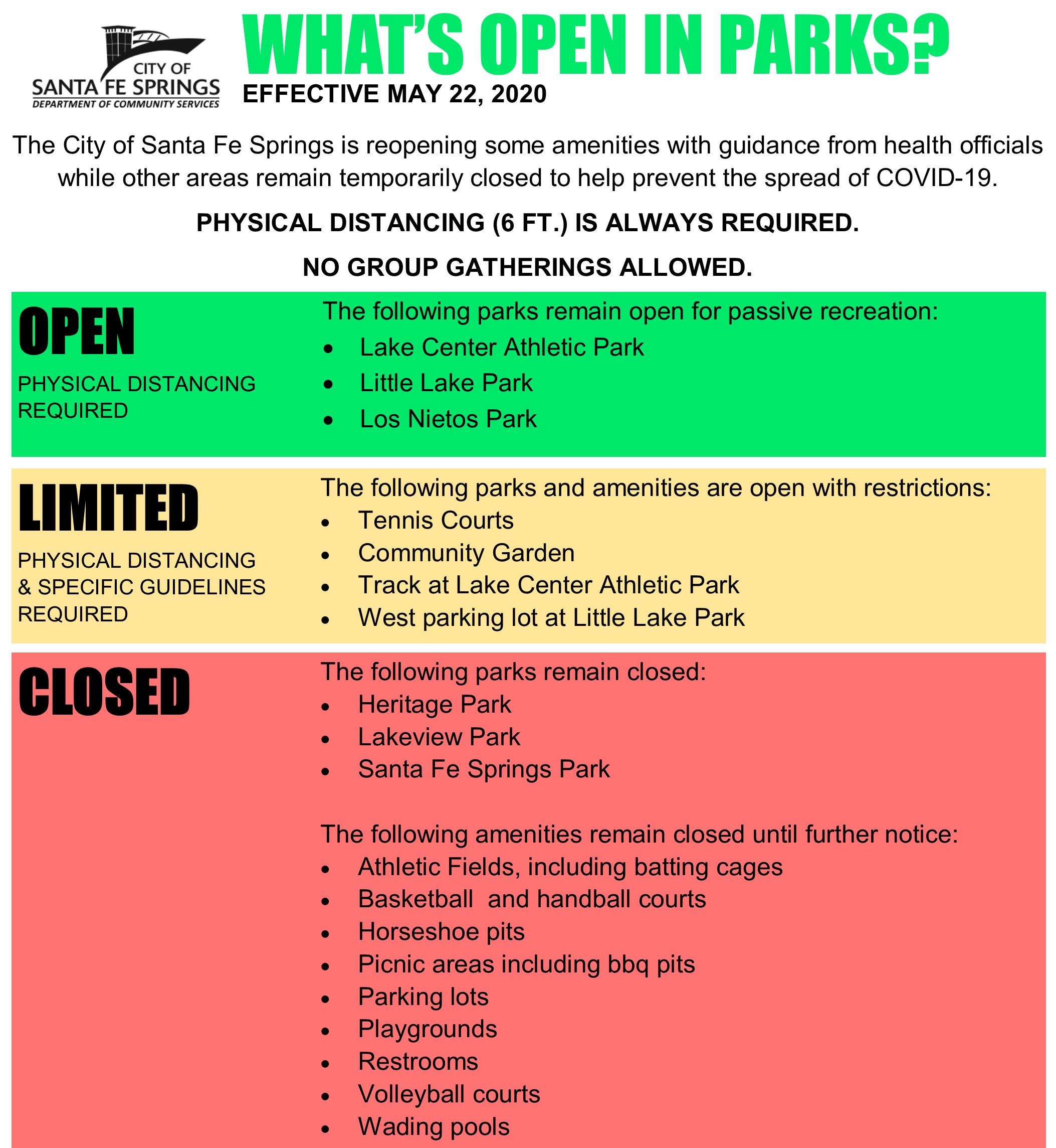 The City of Santa Fe Springs will continue to provide the public with the information and resources which are in need during this period of emergency. The City of Santa Fe Springs thanks its employees and appreciates their patience and understanding as we all work through this period together.